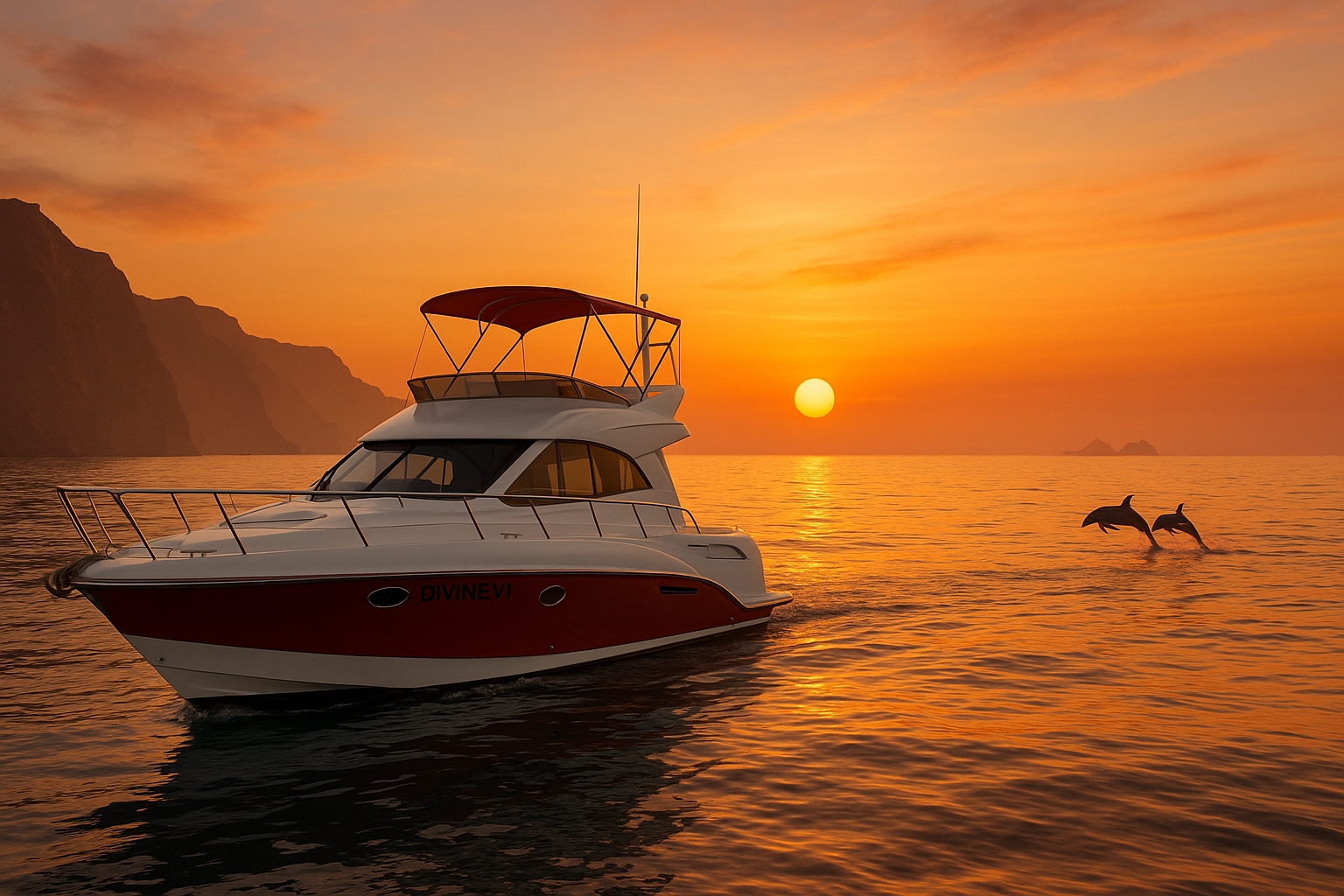 Divine Boats — это синоним качества и эксклюзивности в организации морских приключений на Мадейре. Их флот, включающий элегантную 11-метровую яхту с двумя двигателями по 250 л.с. и маневренную RIB-лодку Zodiac Pro-Open 5.5 м с мотором Honda 100, гарантирует комфорт и безопасность для любого типа путешествия. Компания гордится персонализированным подходом: каждый тур адаптируется под ваши пожелания, будь то романтический вечер на закате или семейное приключение с наблюдением за дельфинами.